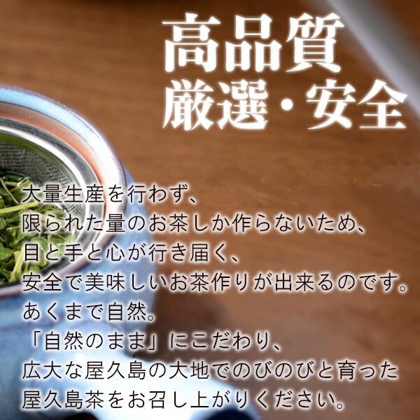 屋久島の雄大な自然の恵みに育まれた無農薬・有機栽培のお茶です。