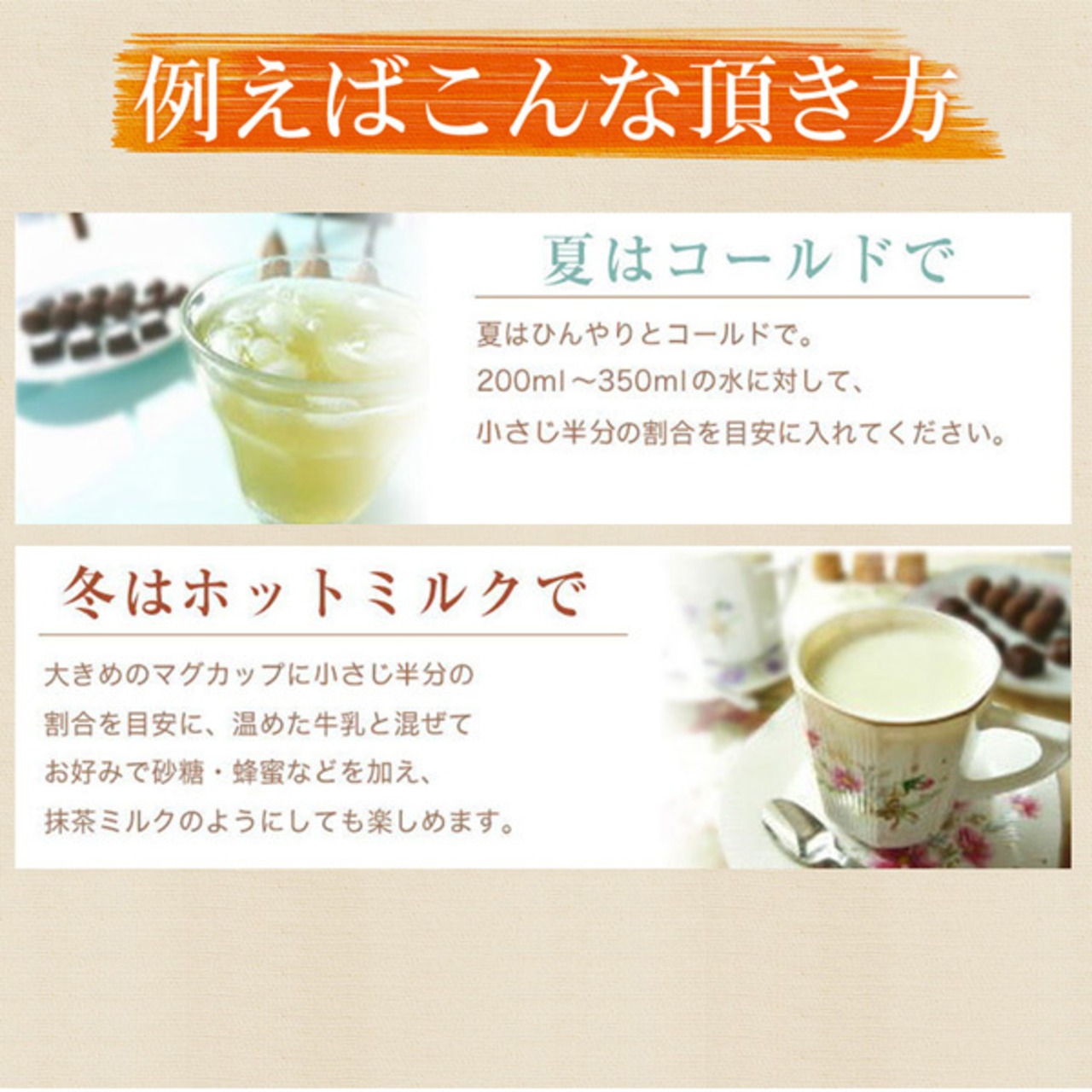 一番茶のみを抹茶状に挽いた微粉末茶です。温かい牛乳にとかしたり、お菓子や料理にも使えます。