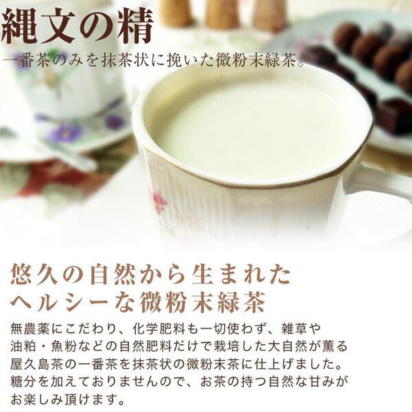 一番茶のみを抹茶状に挽いた微粉末茶です。温かい牛乳にとかしたり、お菓子や料理にも使えます。